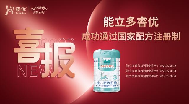 4月11日,國家市場監管總局發布的最新一批“嬰幼兒配方乳粉產品配方注冊批件(決定書)待領取信息”,澳優能立多旗下的澳優愛優嬰兒配方奶粉1段、澳優愛優較大嬰兒配方奶粉2段、澳優愛優幼兒配方奶粉3段、能立多睿優嬰兒配方奶粉1段、能立多睿優較大嬰兒配方奶粉2段、能立多睿優幼兒配方奶粉3段、睿活嬰兒配方奶粉1段、睿活較大嬰兒配方奶粉2段、睿活幼兒配方奶粉3段的9個配方獲得通過。