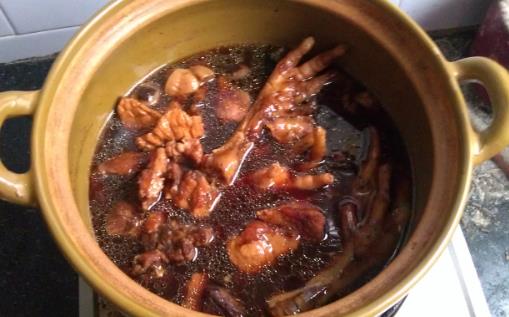 調料:精鹽300克,生抽1000克,魚露500克,冰糖、老抽各100克,雞精130克,糖色150克,花雕酒250克
