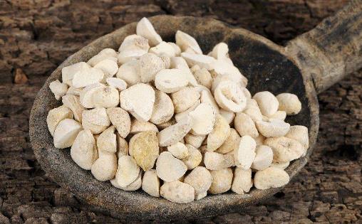 7、半夏配伍天竺黃:半夏辛苦性溫,燥濕化痰、降逆止嘔;天竺黃甘寒,清熱豁痰、涼心定驚。二者伍用,共奏清熱化痰、祛風定驚之功效,用于治療痰濕中阻之胸悶、咳嗽、痰多;痰涎壅盛之中風不語;或小兒高熱之驚風、驚癇抽搐等癥。